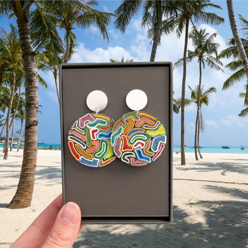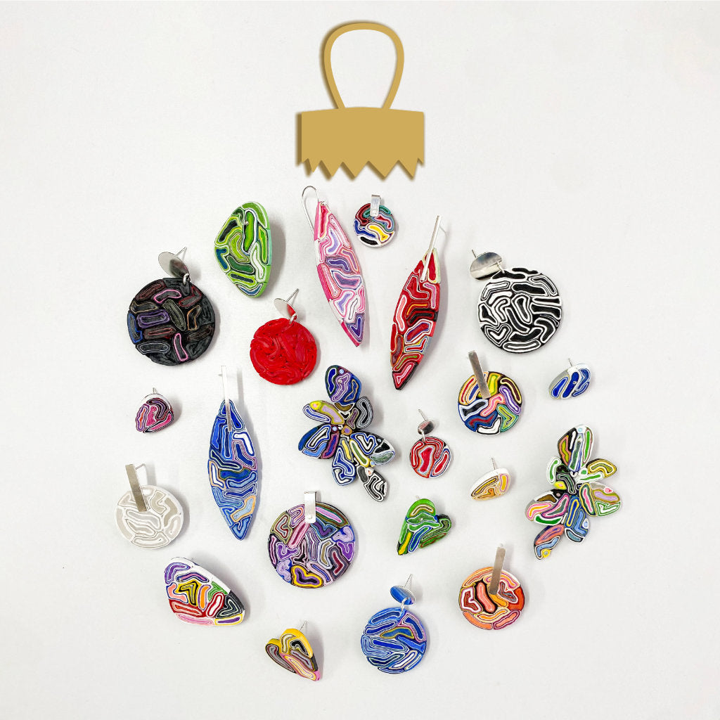 Desde coloridas joyas y accesorios -además de obras de arte en distintos formatos- hasta talleres creativos para aprender a reutilizar desde el arte.