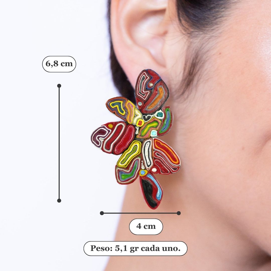 Este modelo fue creado por las artistas visuales Pía Calderón y Jessica Restovic, en conjunto con la diseñadora Magdalena Ruiz-Tagle. Un minucioso trabajo de arte hecho joya. Esto significó un nuevo desarrollo de técnicas con plástico reutilizado y combinaciones.