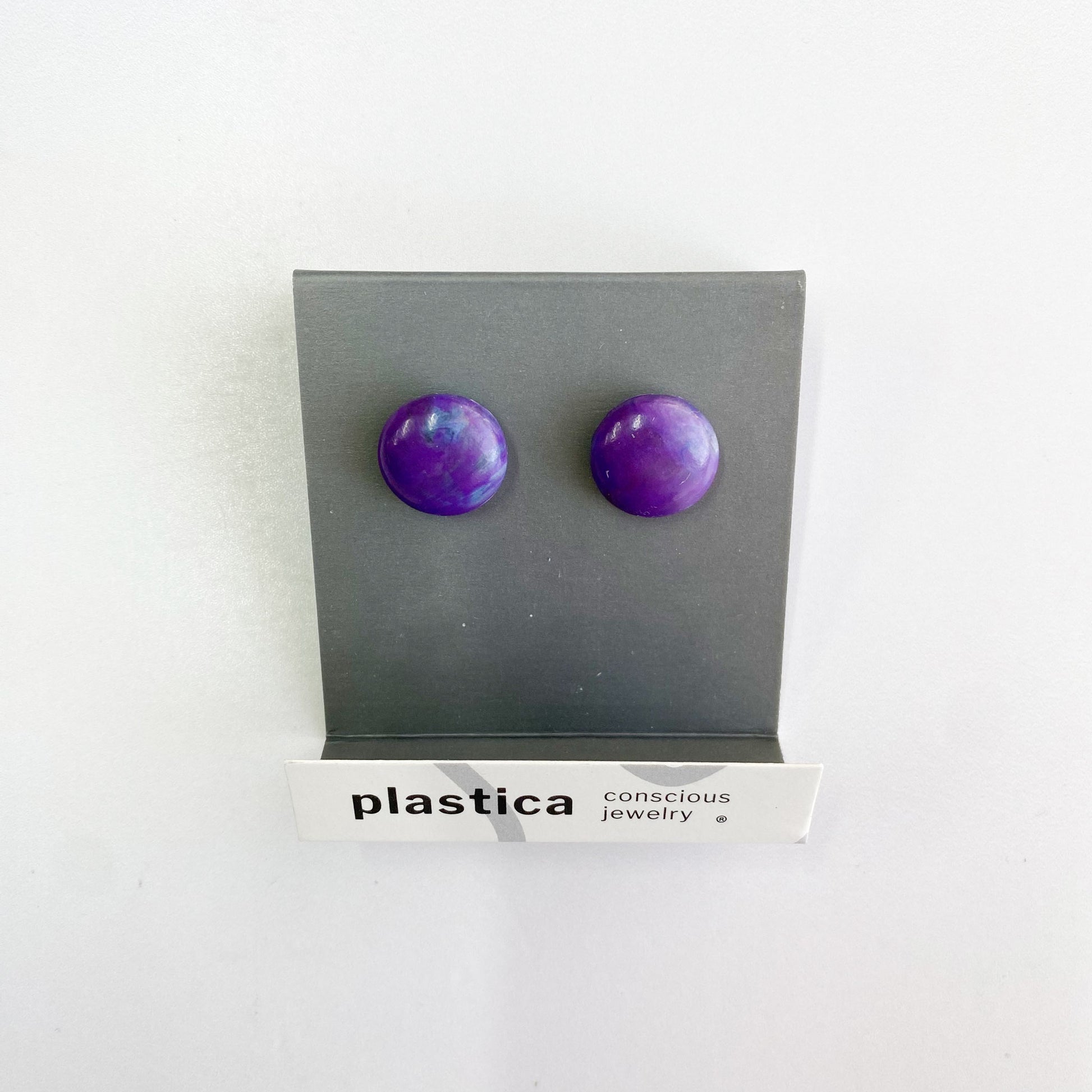 Aros Dulce, Cada par es único e irrepetible, hechos con plástico reutilizado. Tiene pin de plata con base de alpaca recubierta con resina.