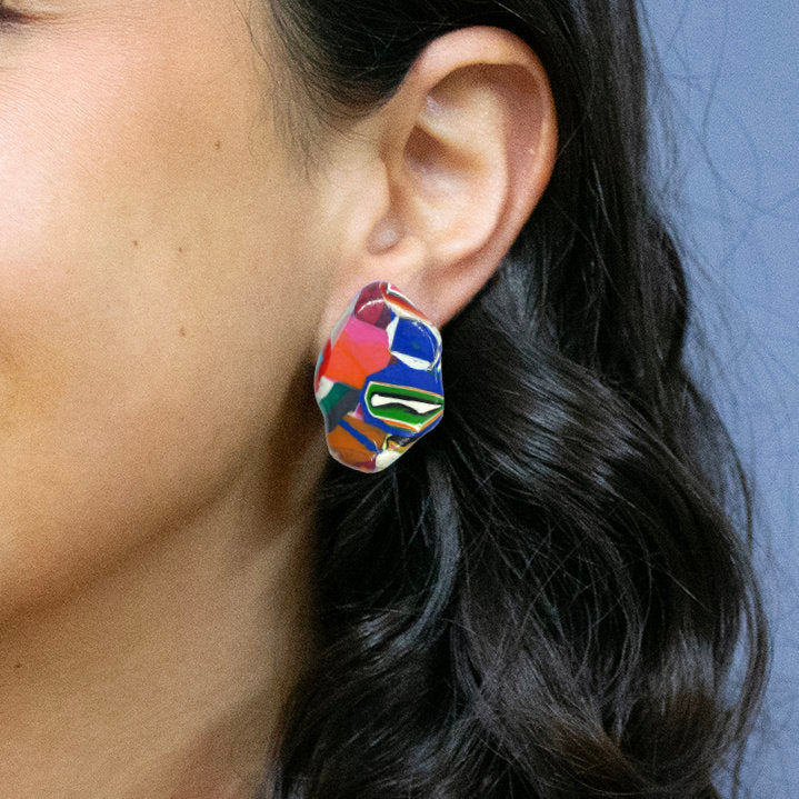 Allegra es color, volumen y maximalismo. Lleva la reutilización de nuestros retazos y descartes a una nueva dimensión del diseño con nuevas técnicas volumétricas de gran personalidad, pero manteniendo siempre la liviandad y comodidad que nos caracteriza. Una colección completa de aros, collares y anillo; donde cada pieza es única e irrepetible.