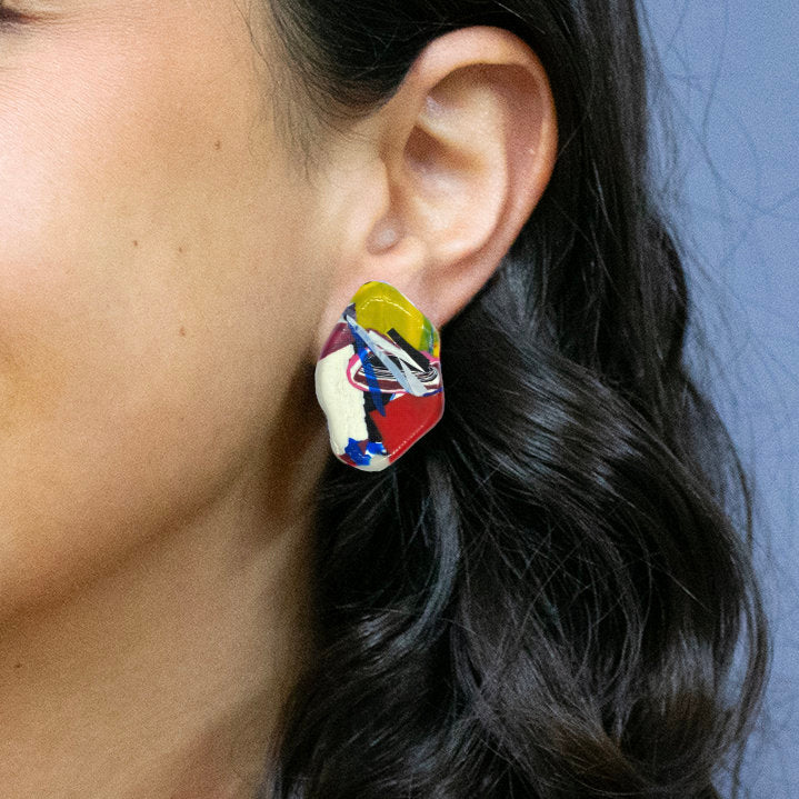 Allegra es color, volumen y maximalismo. Lleva la reutilización de nuestros retazos y descartes a una nueva dimensión del diseño con nuevas técnicas volumétricas de gran personalidad, pero manteniendo siempre la liviandad y comodidad que nos caracteriza. Una colección completa de aros, collares y anillo; donde cada pieza es única e irrepetible.