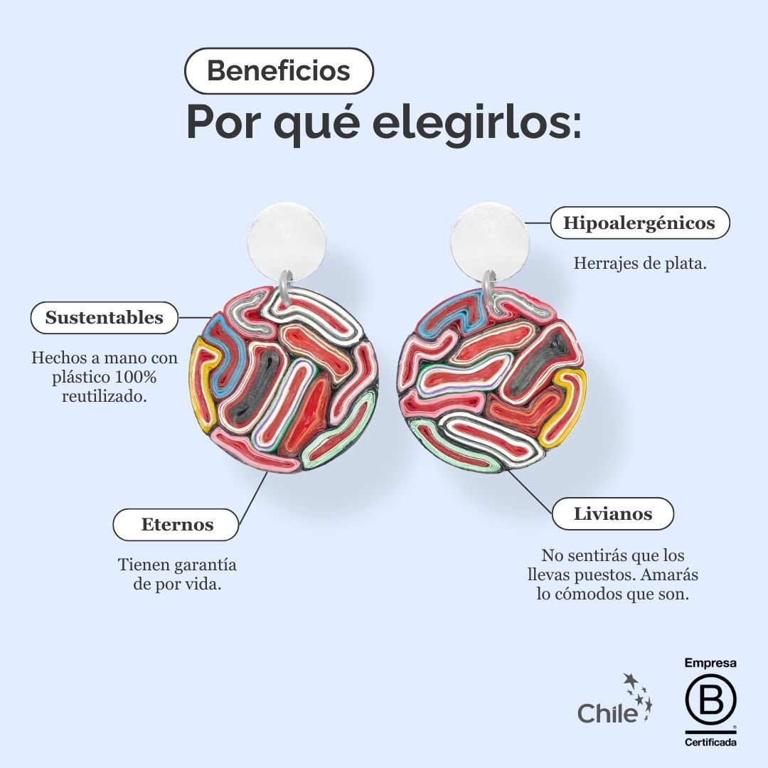 ➜ Se elaboran con plásticos reutilizados y diseñados por mujeres chilenas.