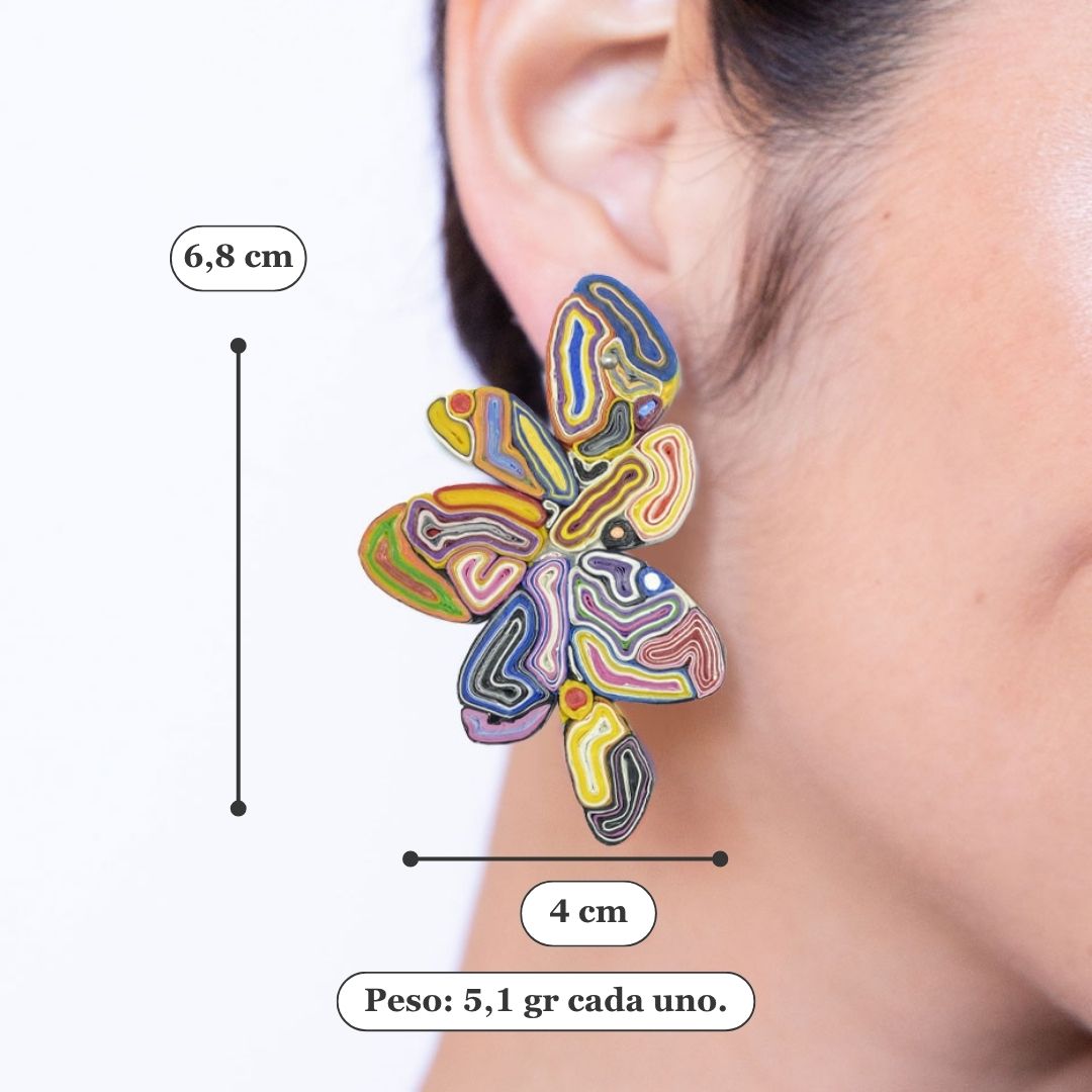 Este modelo fue creado por las artistas visuales Pía Calderón y Jessica Restovic, en conjunto con la diseñadora Magdalena Ruiz-Tagle. Un minucioso trabajo de arte hecho joya. Esto significó un nuevo desarrollo de técnicas con plástico reutilizado y combinaciones.